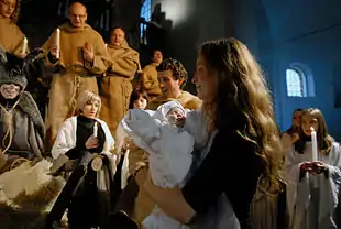 The first Christmas operas, dating from the early 17th century, had librettos based on the Nativity of Jesus and were privately performed. At various times well into the 19th century, public theatres in Italy and other Catholic countries were closed during the season of Advent, the four weeks up to and including Christmas Eve. The opera season customarily recommenced on St. Stephen's Day, 26 December.[1] Numerous world premieres have taken place in Italy on that day, although all were on secular subjects and unrelated to Christmas.[lower-alpha 1] The prohibition of secular theatrical performances during Advent was to some extent circumvented by the performance of azioni sacre, operas on religious themes, often with elaborate staging. One of the earliest Christmas operas of this type was Giovanni Battista da Gagliano and Jacopo Peri's Il gran natale di Christo salvator nostro (The Great Nativity of Christ, Our Saviour), first performed on Christmas Day 1622.