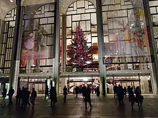 While not based on Christmas themes, some operas based on fairy tales or nursery rhymes such as Massenet's Cendrillon,[lower-alpha 2] Humperdinck's Hansel and Gretel, and Victor Herbert's Babes in Toyland have been traditionally performed during the Christmas season. Hansel and Gretel, which premiered in Germany on 23 December 1893, has been a Christmas staple at the Metropolitan Opera since 1905. On Christmas Day 1931 it became the first opera to be transmitted live on the radio from the Met.[15] Puccini's La bohème, whose first two acts take place on Christmas Eve, is also frequently presented at some point during the Christmas season, especially at the Metropolitan Opera, London's Royal Opera House, and Opera Australia.[16][17][18]