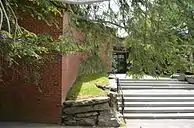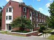 Designed by Benjamin C. Thompson,[13] the Hillside complex is a network of five interconnected dorms west of Lorimer Chapel set in a stand of white birch and pine trees. Hillside halls have a lounge on every floor.