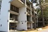 1999 | Named for philanthropist Harold Alfond and his wife. Located in the woods near the highest point of Mayflower Hill, the Senior Apartments are connected to campus but secluded and with a separate driveway. Designed as an on-campus choice for seniors who desire greater autonomy and independence, the Alfond apartments house 107 seniors in suites for four, five, or six individuals. Each suite has a private bathroom and fully equipped kitchen. Small patios and a large common room with a kitchen and sound system provide space for social gatherings. | [29][30] |