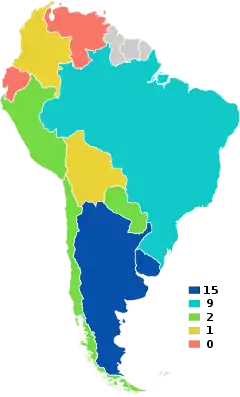 With 15 titles, Argentina and Uruguay are the most successful Copa América teams. Brazil has nine. The other former champions are Paraguay, Peru and Chile, with two titles each, and Bolivia, and Colombia, who have each won one.