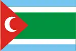 ![]() | 1972-1977 | Flag of The Djibouti Liberation Movement | A Green Field with 2 white stripes, 2 light blue stripes and a red isosceles triangle at the hoist bearing a crescent moon in its center. |