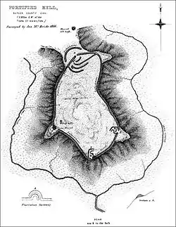 The Portsmouth Earthworks is a large mound complex constructed by the Ohio Hopewell culture (100 BCE to 500 CE).[11] The site was one of the largest ceremonial centers constructed by the Hopewell and is located at the confluence of the Scioto and Ohio Rivers. The majority of the site is now covered by the city of Portsmouth in Scioto County, Ohio.[11] |