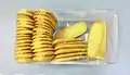 This is list of Indonesian snacks. In Indonesian, snacks are called kudapan, makanan kecil (lit. "small food") or makanan ringan (lit. "light food"). They might taste savoury or sweet, snack foods are a significant aspect of Indonesian cuisine which is very diverse. Traditional kue snacks — a collection of steamed or fried snacks with rice-flour and coconut sugar-based ingredients, exist in many forms. While traditional crackers of krupuk and kripik chips were also a popular crispy choice.