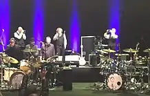 Rieflin was temporarily replaced again for an autumn 2017 tour by Chris Gibson.[27] For the band's 50th anniversary tour in 2019, it was announced that Rieflin would once more be temporarily replaced, this time by Theo Travis.[28] However, after a day of rehearsal, the band opted instead to do the 2019 tour as a seven-piece.[29] Rieflin's parts were divided among other band members, with Jakszyk and Collins adding keyboards to their on-stage rigs, and Levin once again using the synthesizer he used during the 1980s tours.[30] Rieflin died of cancer on March 23rd, 2020, reducing the lineup to a septet.[31]