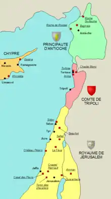 In the County of Tripoli, now in Northern Lebanon and coastal Syria: