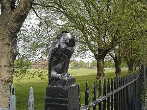 Owls on every post along the school's playing fields fence.