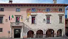 For about a century (from 1416 until 1509) Rovereto belonged to the Serenissima.[2] The Palazzo Pretorio, or Palazzo Podestà, was the abode of the podestà. The palace is typically Venetian, and was built by Andrea Valier, Rovereto's first podestà, upon the Venetians' arrival in 1416.[3] While the city was under Venetian sway for almost a century, today the Palazzo dei Podestà and the Castle are the only vestiges of Venetian rule.[4] With the conclusion of the war against Venice conducted by the League of Cambrai and the Venetian defeat at the Battle of Agnadello, Rovereto was occupied by Imperial troops. Maximilian I confirmed the privileges and the statutes to the fedeli consoli e cittadini e alla comunità della città di Rovereto (loyal consuls and citizens and the community of Rovereto), thus confirming Rovereto's rank of city.[5]