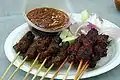 Meat dish | Dish of seasoned, skewered and grilled meat, served with a sauce. |
