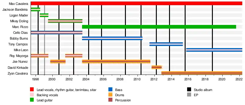 | Dino Cazares | 2021—present | lead guitar | Cazares joined the band in August 2021 after the rumoured departure of Marc Rizzo. Cazares had previously made guest live appearances during the Soulfly touring cycle. |