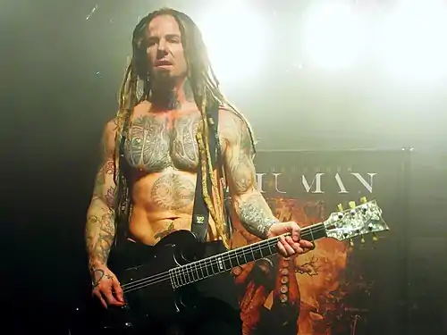 Soulfly is an American heavy metal band from Phoenix, Arizona. Formed by vocalist and rhythm guitarist Max Cavalera following his departure from Sepultura in 1997, the group originally included lead guitarist Jackson Bandeira, bassist Marcelo "Cello" Dias and drummer Roy "Rata" Mayorga.[1] Bandeira left after the recording of the band's self-titled debut album, with former Machine Head guitarist Logan Mader taking his place in April 1998 for the album's touring cycle.[2] Mader had left by the following January,[3] with Mikey Doling joining in his place.[4] Mayorga departed the group in July 1999,[5] with Joe Nunez announced as his replacement in November.[6] Nunez performed on the 2000 album Primitive, but left the following October due to concerns with his "financial arrangement with the group". Mayorga returned in his place.[7]