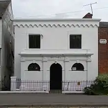The Bethel Chapel, The Bars, Guildford, is a Strict Baptist Chapel affiliated to the Gospel Standard group of Strict & Particular Baptist churches.[21] The Church was established in 1879 and the present building opened in 1910.[22] Bethel still adheres to its original Articles of Faith and worship is conducted much as it was a century ago.[23] |