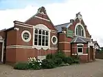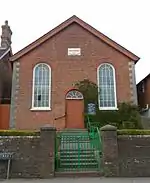 A round-windowed, red and yellow brick building of 1888 replaced the village's first Baptist chapel, first recorded in 1782. |