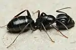 The Red List of the Swedish Species Information Center at the Swedish University of Agricultural Sciences lists two species as near threatened and six threatened: three endangered and three critically endangered.[lower-alpha 6] One species, Camponotus vagus, is extinct in Sweden,[11] but is still widespread in Central Europe.[97]