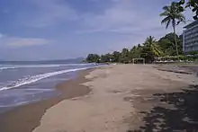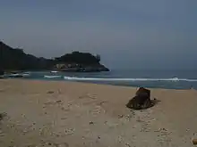 The province of West Java contains beaches on both its northern coast and southern coast. The beaches of the northern coast are known for its calm water due to the low wave-energy of the Java Sea.[2] The more notable beaches on the southern coast are known for the big waves and famous for surfing.[9] Some beaches on the southern coast are considered sacred due to their association with Nyai Roro Kidul.[8] The Javanese beliefs warn people not to wear green clothes on these beaches because the color is sacred and wearing one may offend her and cause the person to drown into the sea.[8][9]