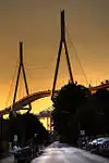 ![]() | Köhlbrandbrücke 53°31′18″N 9°56′18″E | 1974 | 3,940 m (12,930 ft) | Waltershof, Steinwerder | designed by Paul Boué, Egon Jux and Hans Wittfoht; was the world's longest cable-stayed bridge from 1974 to 1991 | |