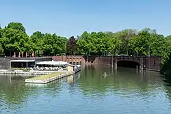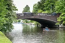 ![]() | Schwanenwikbrücke 53°33′56″N 10°1′1″E | 1878[4] | 55 m (180 ft) | Hohenfelde, Uhlenhorst | designed by Franz Andreas Meyer | |