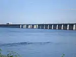 The first railway bridge to Montreal Island was the Grand Trunk Railway bridge across the Ottawa River East Channel. Along with another bridge built simultaneously across the West Channel, this bridge provided the first fixed link from Montreal to the mainland.[3] It was not until 1925, however, that a fixed road link, formed by Galipeault Bridge and Taschereau Bridge, was built across the Ottawa River from Montreal Island.[31] Île Perrot was the only way out of Montreal to the West before the construction of Île aux Tourtes Bridge, which goes directly to Vaudreuil across the Lake of Two Mountains.[31]