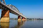 Pakokku Bridge![]() | 25 | ဧရာဝတီတံတား (ပခုက္ကူ) | 120 m (390 ft) (x22) | 6,278 m (20,597 ft) | Truss Steel | India–Myanmar–Thailand Trilateral Highway Railway bridge Irrawaddy River | 2012 | Pakokku 21°17′52.8″N 95°03′37.3″E | Magway | [Note 2] [S 12] [26] [27] |