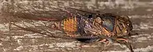 - Telmapsalta hackeri (Distant, 1915) (Paperbark Cicada)