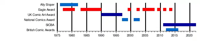 - British Comic Awards — 2012[25]–c. 2016 (in conjunction with the Thought Bubble convention)
