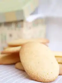This is a list of notable cookies (American English), also called biscuits (British English). Cookies are typically made with flour, egg, sugar, and some type of shortening such as butter or cooking oil, and baked into a small, flat shape.