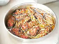 Media related to Eggplant-based food at Wikimedia Commons- Traditional Recipe for Eggplant Parmesan from Dining Mosaic