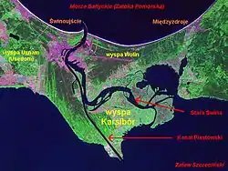 - Sobieszewo Island Area: 34.3 km² population: 3,570 people, 54°20′11″N 18°52′29″E[2]