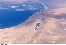 Dead Sea (foreground) and Sea of Galilee (background), taken from the ISS in 2006