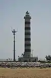 | Diga Curvilinea Lighthouse | ![]() | 1868 | Livorno 43°32′34.49″N 10°17′21.7″E | Fl WR 3s. | 22 metres (72 ft) | 7888 | E1368 | white: 16 red: 12 |