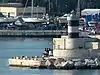 | Diga del Marzocco Lighthouse | ![]() | 1917 | Livorno 43°33′28.0″N 10°17′26.49″E | Fl (3) R 10s. | 13 metres (43 ft) | 7896 | E1360 | 7 |