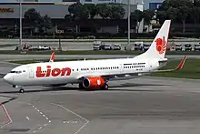 A Lion Air Boeing 737-900ER at Singapore Changi Airport in Singapore