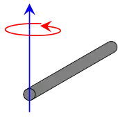| Thin rod of length L and mass m, perpendicular to the axis of rotation, rotating about one end.