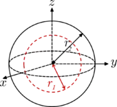 When the cavity radius r1 = 0, the object is a solid ball (above). When r1 = r2, , and the object is a hollow sphere. |