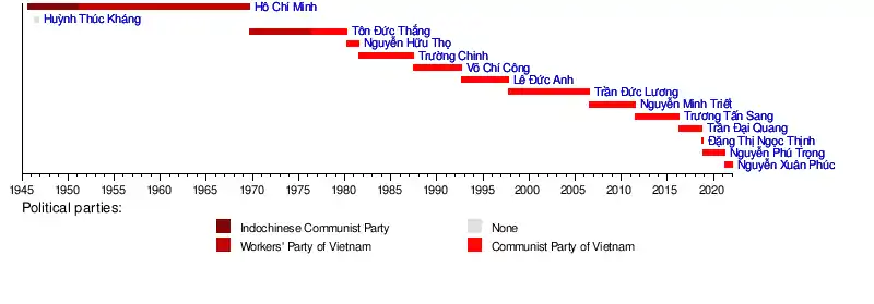 2 September 1945 | 2 September 1969† | 24 years | Indochinese Communist Party (until February 1951) Worker's Party of Vietnam (from February 1951) |