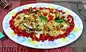 India | A rice-based dish with its origins in the state of Karnataka, India. Bisi-bele-bhaath translates to hot lentil rice in the Kannada language. The traditional preparation of this dish is quite elaborate and involves the use of spicy masala, toor dal (a type of lentil) and vegetables. Spices like nutmeg and asafoetida, curry leaves and tamarind pulp used in its preparation contribute to the unique flavor and taste of this dish. |