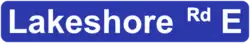 A part of the former Highway 2, Lakeshore Road is the most southerly major arterial road in Mississauga, and is a continuation of Lake Shore Boulevard in Toronto. Lakeshore jogs 2 km south at Southdown Road in order to remain close to the shoreline, and it continues west into Oakville, before ending in Burlington. Lakeshore is the only arterial road which crosses Hurontario Street but is not divided into east and west segments by it, instead being split by the Credit River.