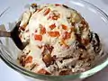 Bombay mix is the name used in the United Kingdom and Ireland for a traditional Indian snack known as chiwda, chevdo, bhuso (if made without potato), chevda or chivdo in India, or Chanāchura in Odisha and chanachur in Bengal. It consists of a variable mixture of spicy dried ingredients, which may include fried lentils, peanuts, chickpea flour noodles, corn, vegetable oil, chickpeas, flaked rice, fried onion and curry leaves. | |