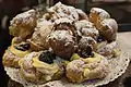 Consisting primarily of sugar or honey and almond meal, sometimes augmented with almond oil or extract. Pictured is marzipan made into the shapes of fruits. | |