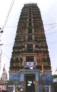 153[6][7] | 1809 AD[6] | Lakshmi Narasimha Temple is dedicated to Vishnu. Its gopuram is eleven storeys tall. Mangalagiri means "The Auspicious Hill". This temple is built on one of the eight important Mahakshetrams (sacred sites) in India[8] | Mangalagiri, Andhra Pradesh, India |