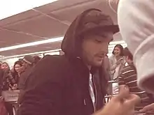 Tom Parker grew up in Bolton.[18] Parker learned to play the guitar at the age of sixteen after trying out his older brother's. He then went on to audition for The X Factor but did not get past the first round. He went to Manchester Metropolitan University and studied geography, but dropped out in pursuit of a professional singing career.[19] Parker joined a Take That tribute band known as Take That II and toured Northern England, before joining the Wanted in 2009.[20]