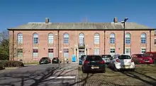 The foundation stone for the new building was laid by the chairman of the council, Councillor J. W. Anderson, on 25 February 1939.[6][7] It was designed by Gerald de Courcy Fraser in the Italianate style, built in red brick with stone dressings at a cost of £20,000 and was officially opened by the chairman of the council, Councillor John Eaton in February 1941.[8][9][10] The design involved a symmetrical main frontage with nine bays facing southeast towards Sefton Road; the central bay featured a doorway flanked by pairs of pilasters supporting an entablature and a wrought-iron grill. There was a French door on the first floor. The other bays were fenestrated by square headed casement windows with architraves on the ground floor and by round headed windows on the first floor. Internally, the principal room was the main assembly hall which was equipped with a stage.[9]