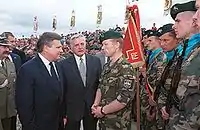 During a visit of the President of Poland Aleksander Kwaśniewski to Lithuania on April 14, 1999, LITPOLBAT was presented with two military standards, Polish and Lithuanian one, financed by presidents of both countries. In 2000 LITPOLBAT became part of the European Union's Rapid reaction force.