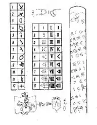 The so-called Sceptre of Gediminas cause much speculation about a medieval Lithuanian calendar. It was found on the shore of the Strėva River near Kietaviškės in 1680. It was an iron stick 68.6 centimetres (27.0 in) in length covered in brass tin with small golden nails that formed various symbols grouped in a spiral of 39 rows. The original was lost at the end of the 19th century, but copies were made and one is kept at the National Museum of Lithuania. A copy owned by the historian Teodor Narbutt was studied and described by the Russian astronomer Matvey Gusev who argued that the symbols marked lunar months and days. No similar artifacts have been found since and researchers doubt its authenticity.[2][3]