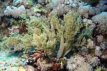 Litophyton arboreum, also known as broccoli coral, is a common soft coral (octocoral) found from the Red Sea to the Western Pacific. It grows up to 80 cm, usually on seaward reef slopes or hard bottoms. The color of L. arboreum varies from pale olive-green to yellow or grey. L. arboreum are anthozoans in the order Alcyonacea in the family Nephtheidae. The L. arboreum was originally classified in 1775 by Peter Forsskål, a Swedish Linnaean naturalist. As of 2016, the entire genus Litophyton was reclassified using phylogenetic data, in contrast to its original morphological classification.[1] [2] [3] [4]