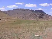 ![]() A section of the Anti-Atlas near Tafraout. The peak in the background is Djebel el Kest. | |