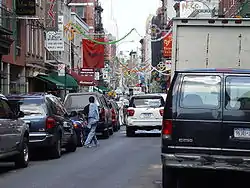 Before 2004, several upscale businesses entered the northern portion of the area between Houston and Kenmare Street. Tonelli said, "Real-estate prices zoomed, making it even tougher for the old-timers—residents and businesspeople alike—to hang on."[4] After the September 11 attacks in 2001, areas below Houston Street were cut off for the rest of the fall of 2001. The San Gennaro feast, scheduled for September 13, was postponed. Business from the Financial District dropped severely, due to the closure of Park Row, which connected Chinatown and the Civic Center; as a result, residents in Little Italy and Chinatown suffered. Tonelli said the post-9/11 events "strangely enough, ended up motivating all these newfangled efforts to save what's left of the old neighborhood."[4]