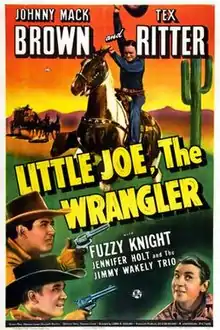 Little Joe, the Wrangler is a 1942 American Western film directed by Lewis D. Collins and written by Sherman L. Lowe and Elizabeth Beecher. The film stars Johnny Mack Brown, Tex Ritter, Fuzzy Knight, Jennifer Holt, Florine McKinney and James Craven. The film was released on November 13, 1942, by Universal Pictures.[1][2][3]