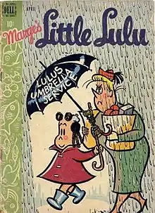 Little Lulu appeared in ten issues of Dell Comics' Four Color comic book series (#74, 97, 110, 115, 120, 131, 139, 146, 158, 165), before graduating to her own title: Marge's Little Lulu in 1948.[10]