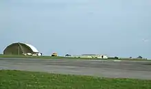 RAF Little Rissington is a base to the west of the A424 in eastern Gloucestershire, east of Little Rissington in Cotswold District. From the 1940s, the base was the home of the Central Flying School. The eastern edge of the airfield meets the Oxfordshire boundary with Gloucestershire. The airfield is the point where the Gloucestershire boundary crosses the A424.